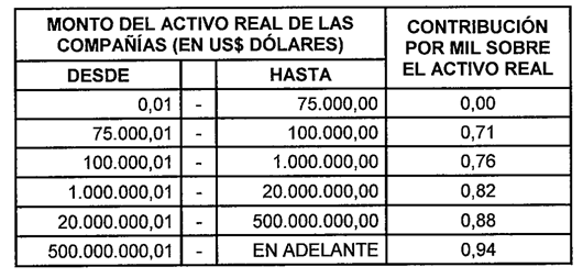La contribución que las compañías y otras entidades sujetas a la vigilancia de esta Superintendencia deben cancelar, de conformidad a lo establecido en el inciso tercero del artículo 449 de la Ley de Compañías, se calculará de acuerdo con lo especificado en el siguiente gráfico:
